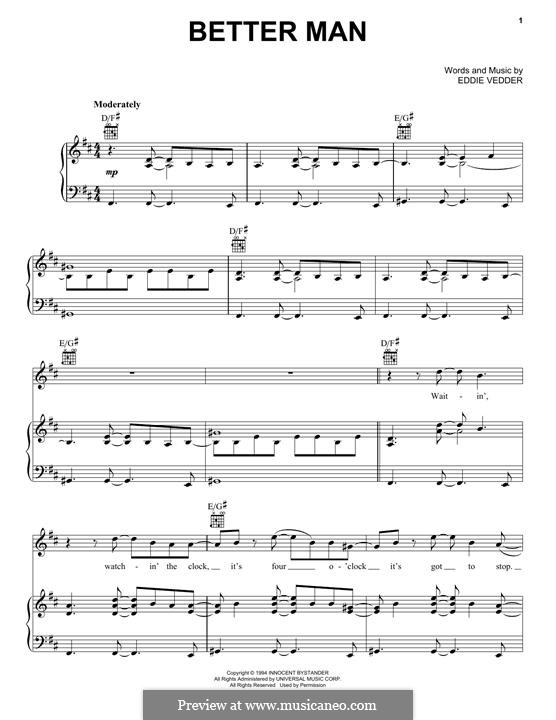 Better Man (Pearl Jam) by E. Vedder - sheet music on MusicaNeo